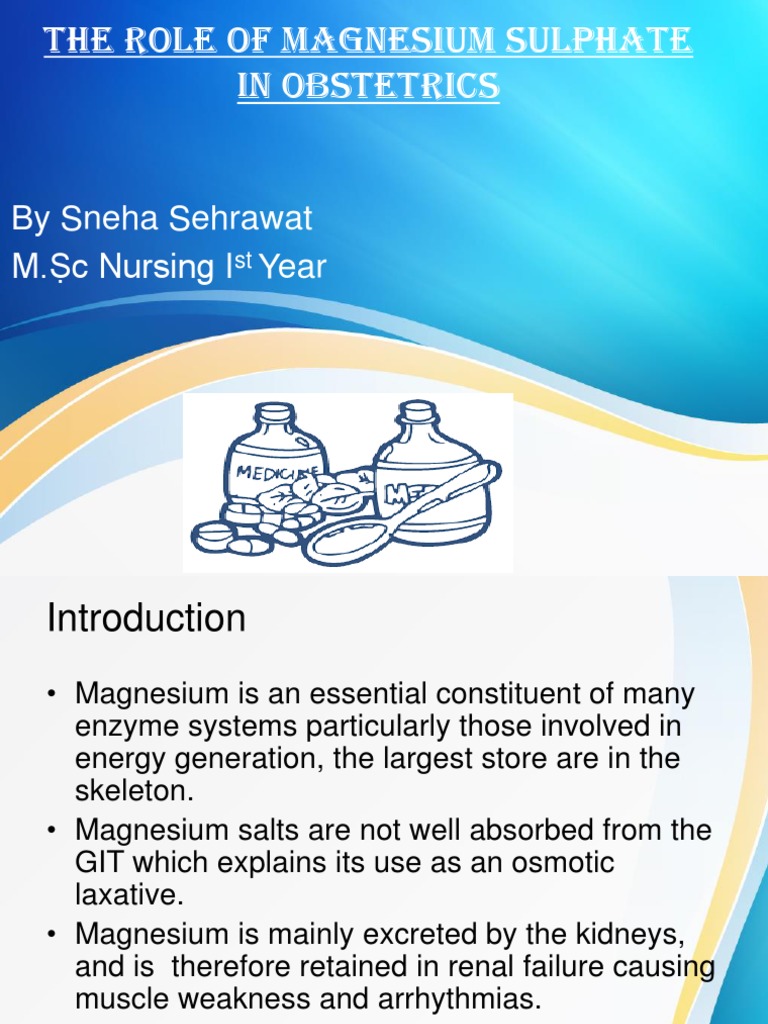 The Role Of Magnesium Sulphate In Obstetrics By Sneha Sehrawat M C Nursing I Year Pdf Magnesium Drugs