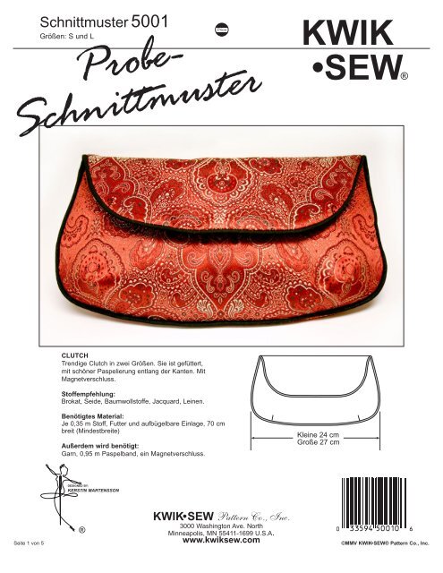 Kwik Sew Schnittanleitung Deutsch Schnittmuster Nr 5001 En Vogue